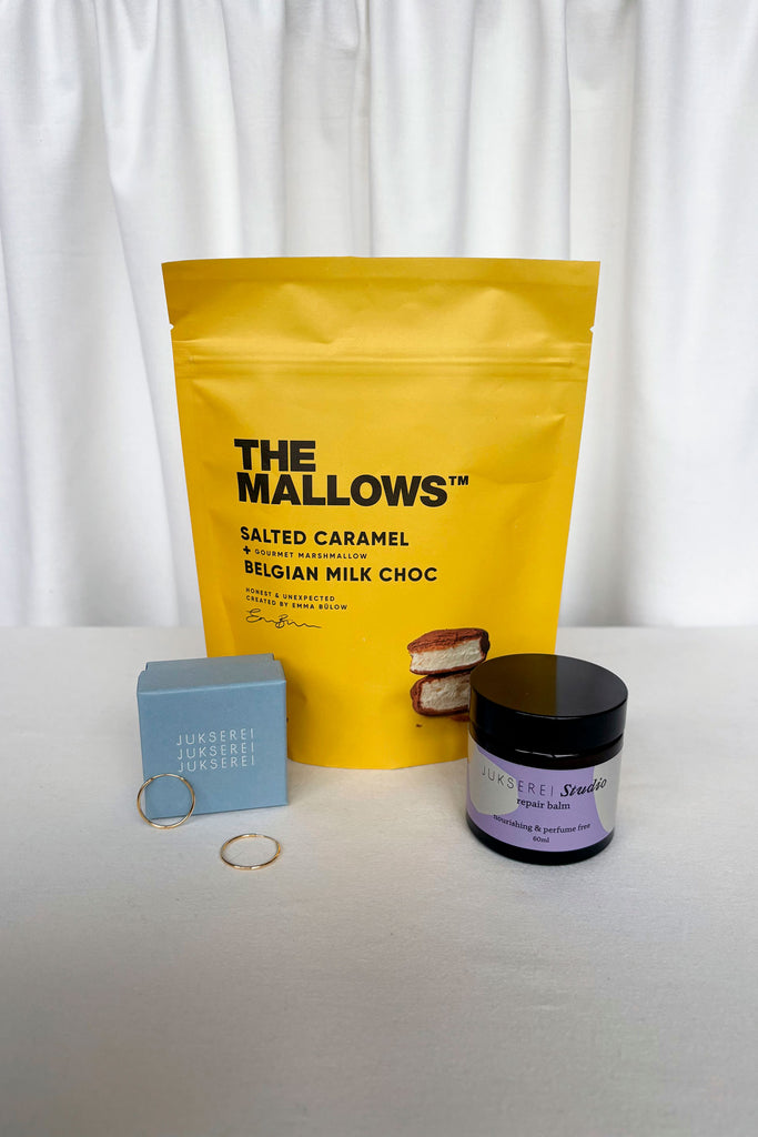 A little warmth for the winter season. Our WINTER TREAT bundle pairs timeless elegance with cosy comfort: classic Creol Earrings, a natural repair balm and indulgent marshmallows infused with salted caramel and Belgian chocolate. A thoughtful winter greeting - crafted to bring softness, sweetness and a touch of everyday luxury to the coldest days. Curious about our other gift sets? Click here