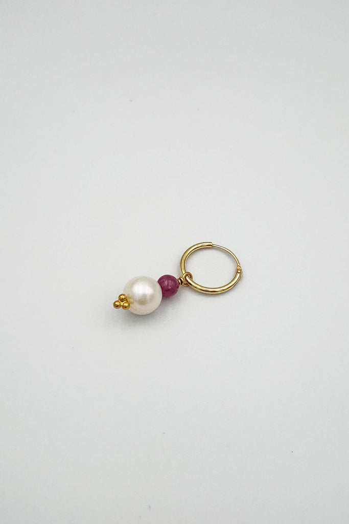 Ruby Gemstone, 100% Natural Freshwater Pearl (White)