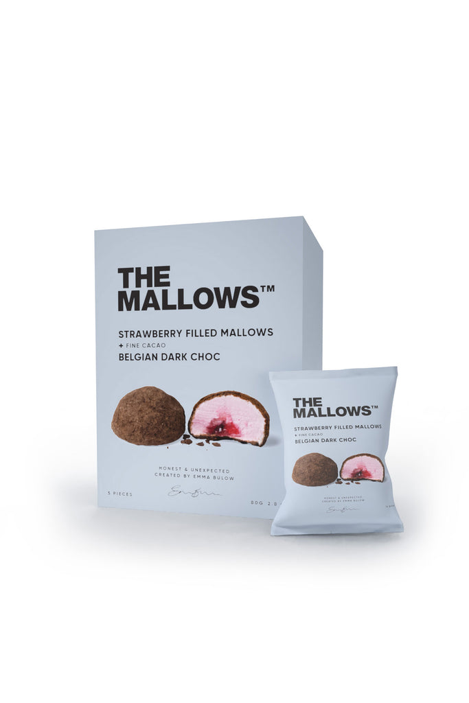 THE MALLOWS · STRAWBERRY FILLED MALLOWS + BELGIAN DARK CHOCOLATE (BOX 5 PCS)